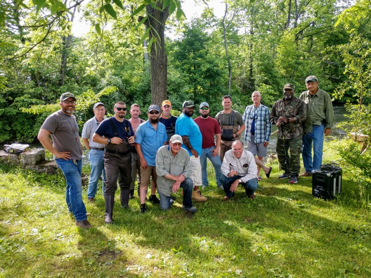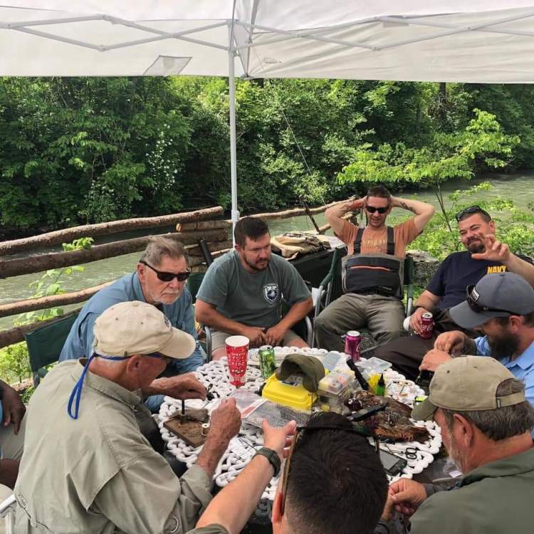 The Donegal vets fly tying and looking good on Victoria’s Landing at Camp Breac and the Spring Creek House. Leading the troops is the iconic fly fisherman and Navy vet Joe Humphreys, founder of the Spring Creek Chapter of Trout Unlimited. Joe is quoted as saying, “Jim, if you and the guys can’t catch a fish here, I will buy your rod.” Joe teaches our streamside mentors and guides how to instruct experienced and aspiring anglers.
